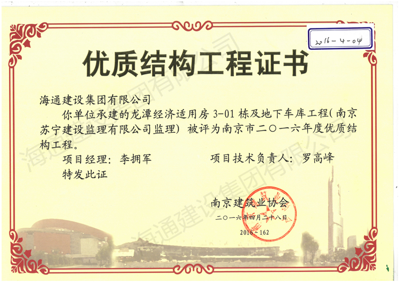 南京市優質結構2016龍潭經適房3-01棟及地下車庫